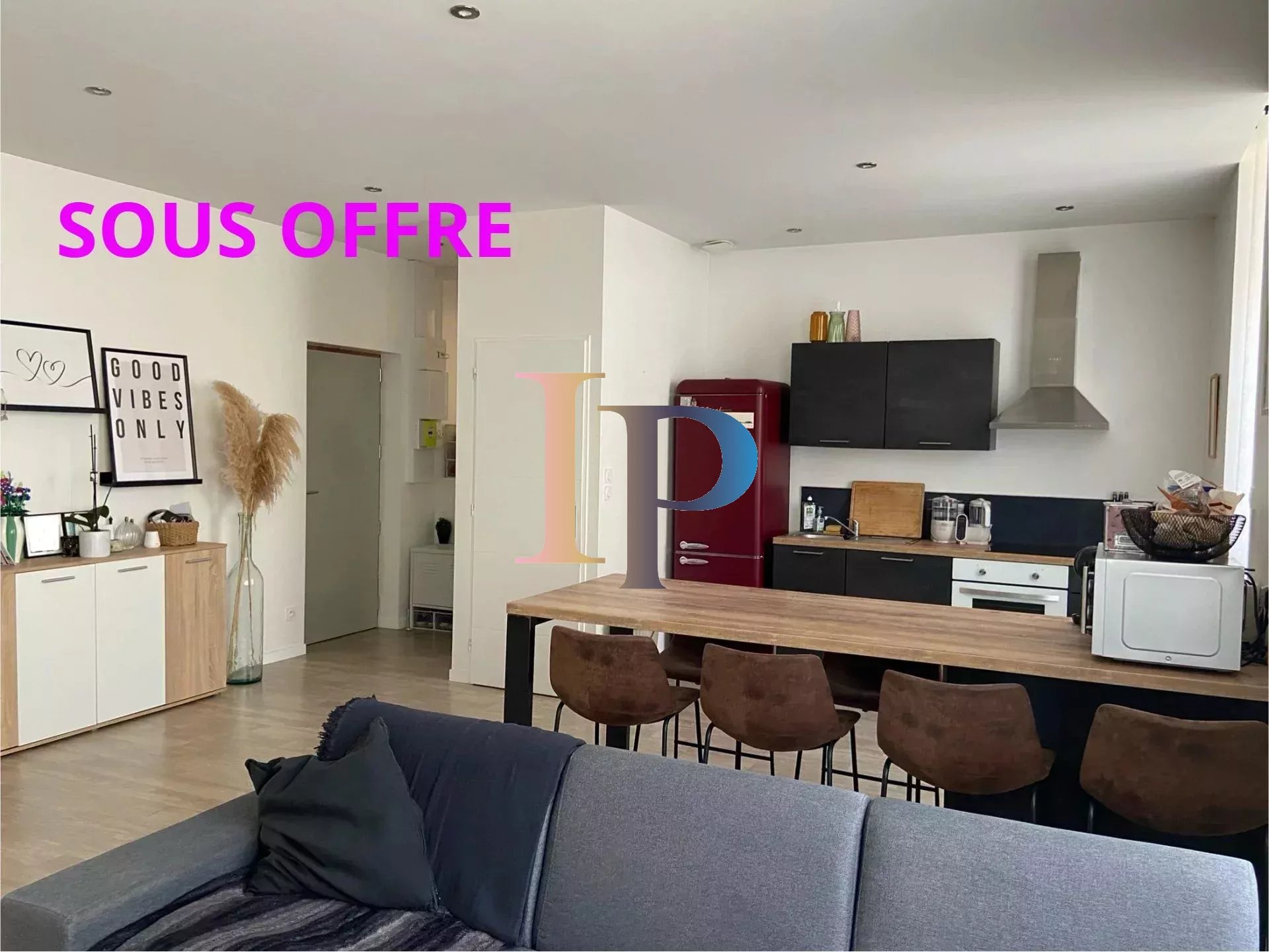 Vous serez séduit par une vaste pièce de vie lumineuse avec cuisine équipée, idéale pour recevoir et partager des moments conviviaux.